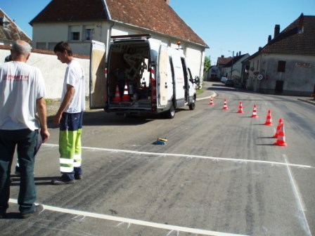 Cette semaine, l’entreprise Girod signalisation a procédé aux travaux de peinture au sol pour sécuriser la circulation piétonne aux abords de l’IMP avec la création d’un passage pour piétons et des marquages au sol incitant les automobilistes à ralentir. Dans les prochains jours, les panneaux de signalisation seront posés et la circulation sera limitée à 30 km/h entre la place de Coligny et le carrefour avec la rue du Châtelet. Enfin la rue du Pont sera mise en sens unique entre le carrefour de la rue de Charcenne et la rue Montante pour éviter le débouché sans visibilité des véhicules à la sortie de la rue du pont sur la route de Charcenne. Ces travaux, dont le coût s’élève à 2 590 € HT, ont été subventionnés par le Conseil Général au titre de la répartition des amendes de police à hauteur de 600 €.